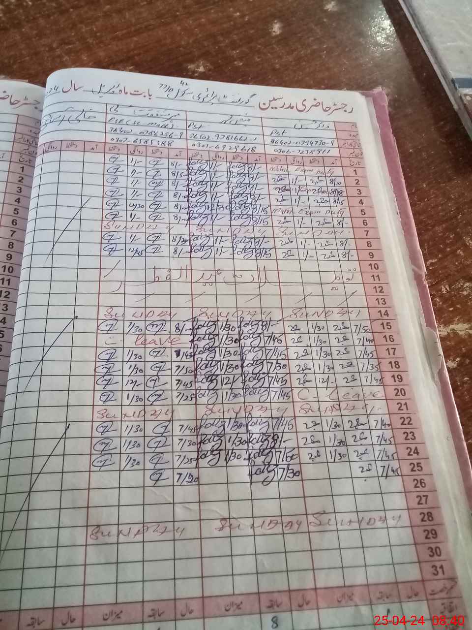 | CNIC | Full Name | Designation | R/C | Absence During Last Calender Month |