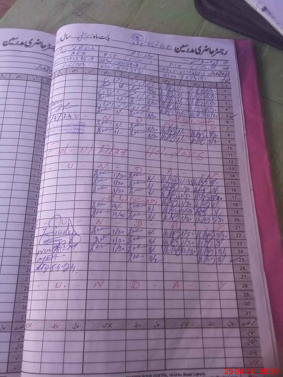 | Name: HA**** NA**** Designation: (School Headmaster's/Headmistress's) PST Phone/Cell Number: 03**** |