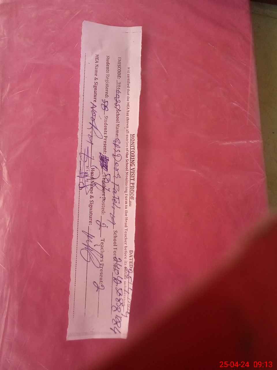 | Attendance Register | Head Teacher | MEA with School | Visit Proof |