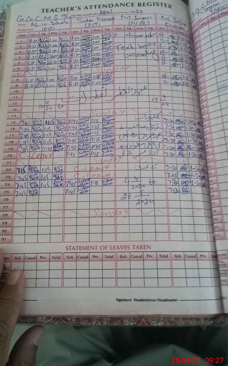 | Name: Al**** Is**** Designation: (School Headmaster's/Headmistress's) PST Phone/Cell Number: 03**** |