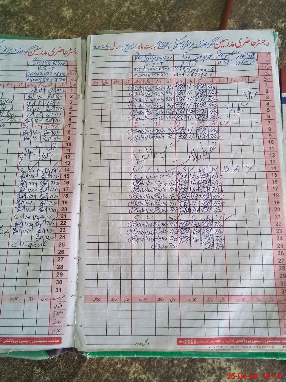 | CNIC | Full Name | Designation | R/C | Absence During Last Calender Month |
