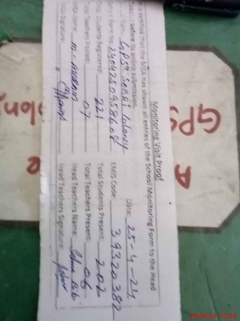 | EMIS Code: 39320382 | Name of School: GPS SABRI COLONY | |||