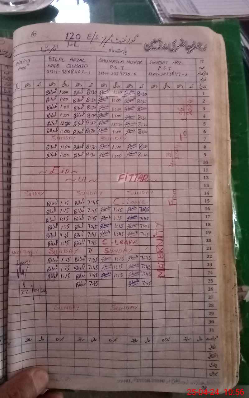 | 33**** | Sh**** Na**** | PST | Regular | 0 | 0 | 0 | 0 | 0 | 0 | 0 | 0 | 0 | Maternity |