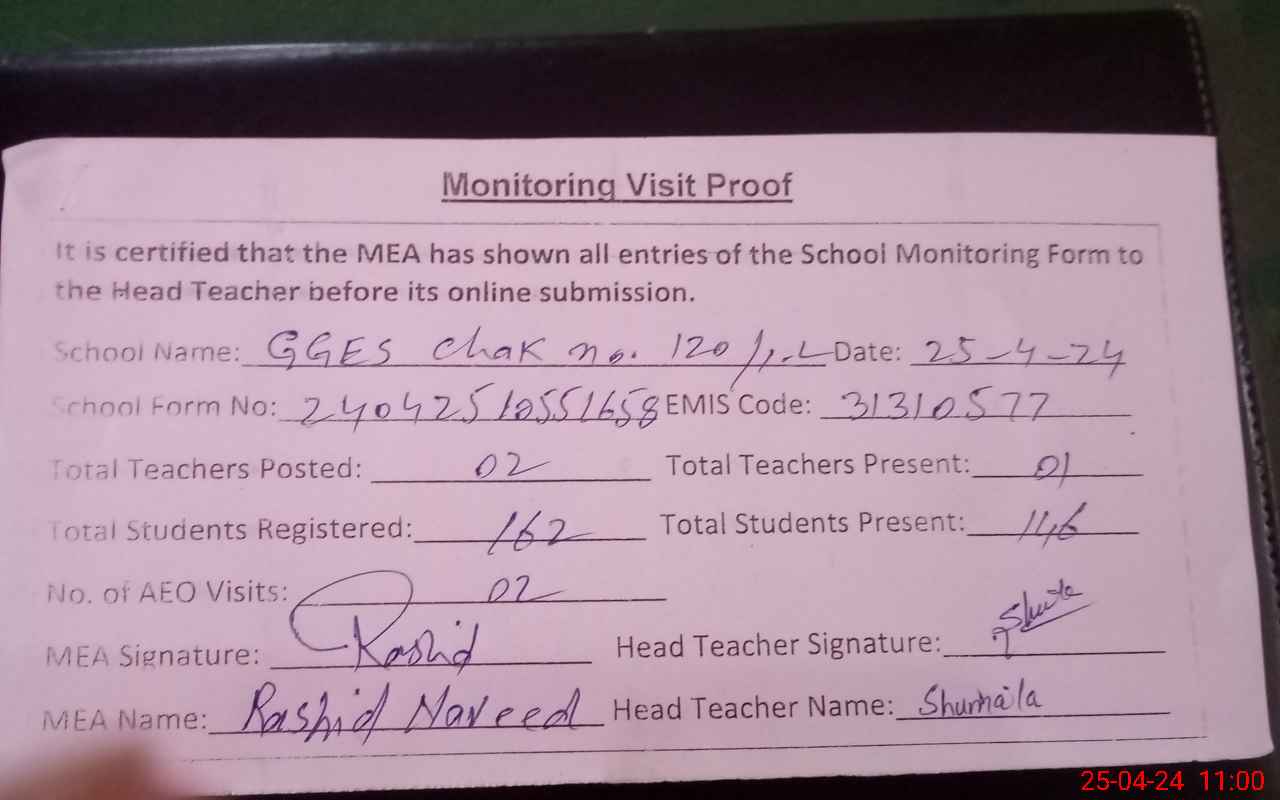 | EMIS Code: 31310577 | Name of School: GGES CHAK NO.120/1-L | |||