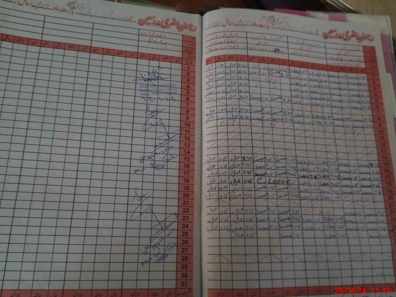 | CNIC | Full Name | Designation | R/C | Absence During Last Calender Month |