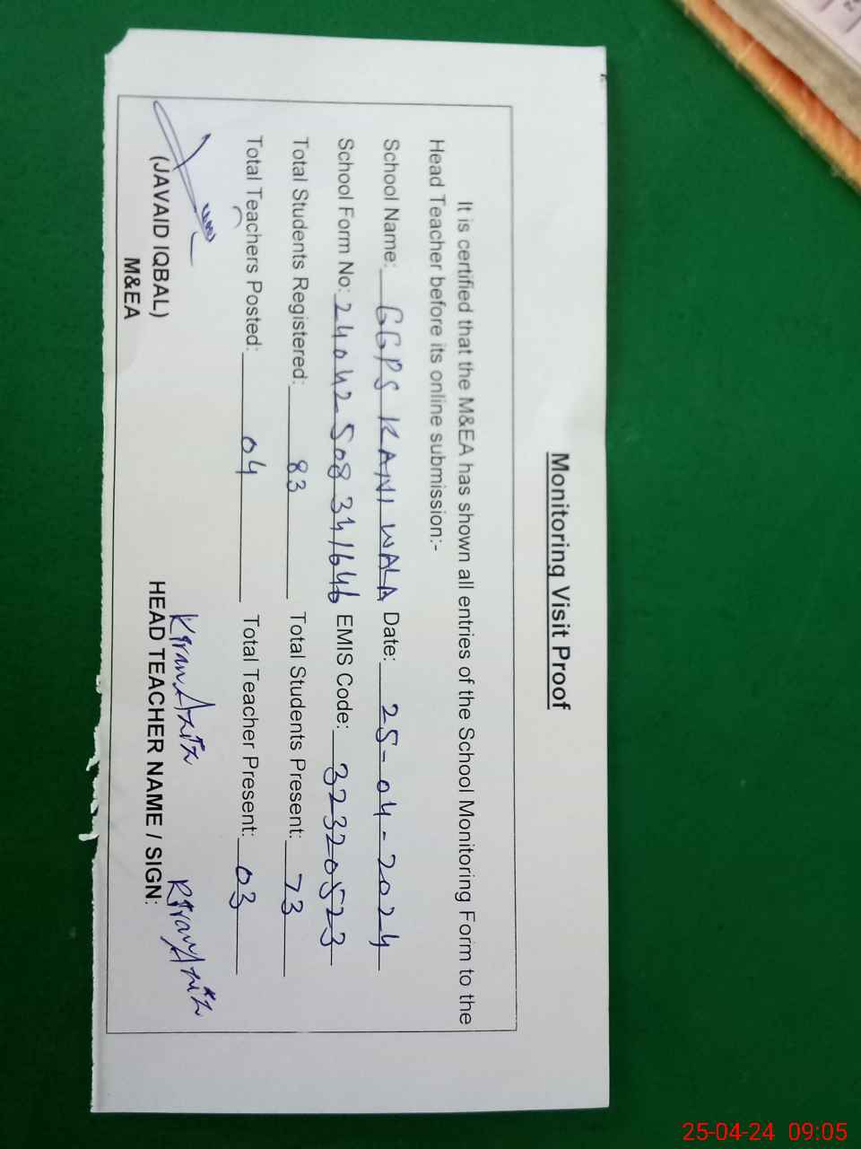 | EMIS Code: 32320523 | Name of School: GGPS KANI WALA | |||