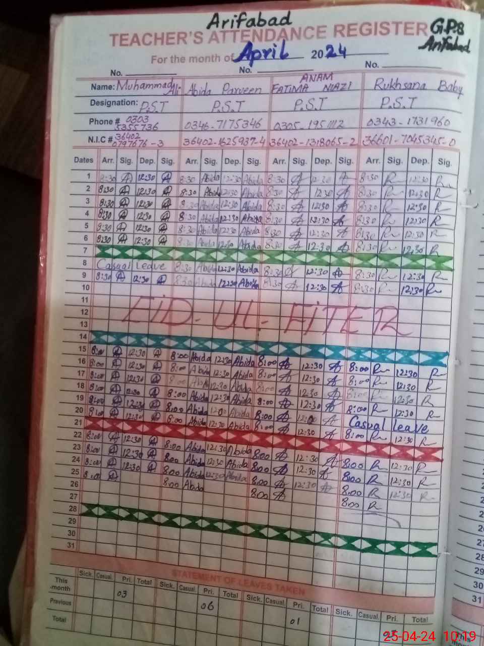 | Name: Ab**** Pa**** Designation: (School Headmaster's/Headmistress's) PST Phone/Cell Number: 03**** |