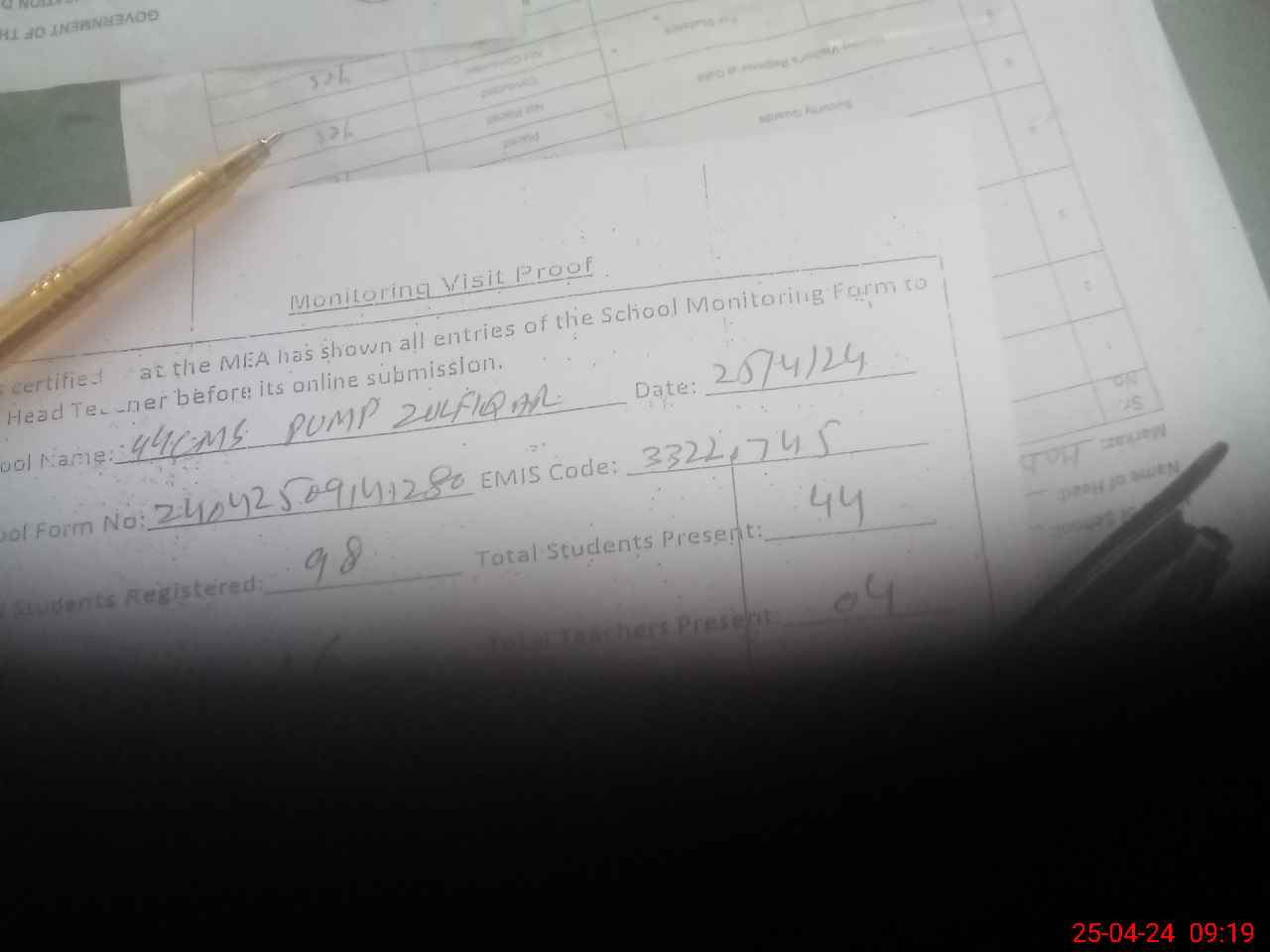 | Attendance Register | Head Teacher | MEA with School | Visit Proof |