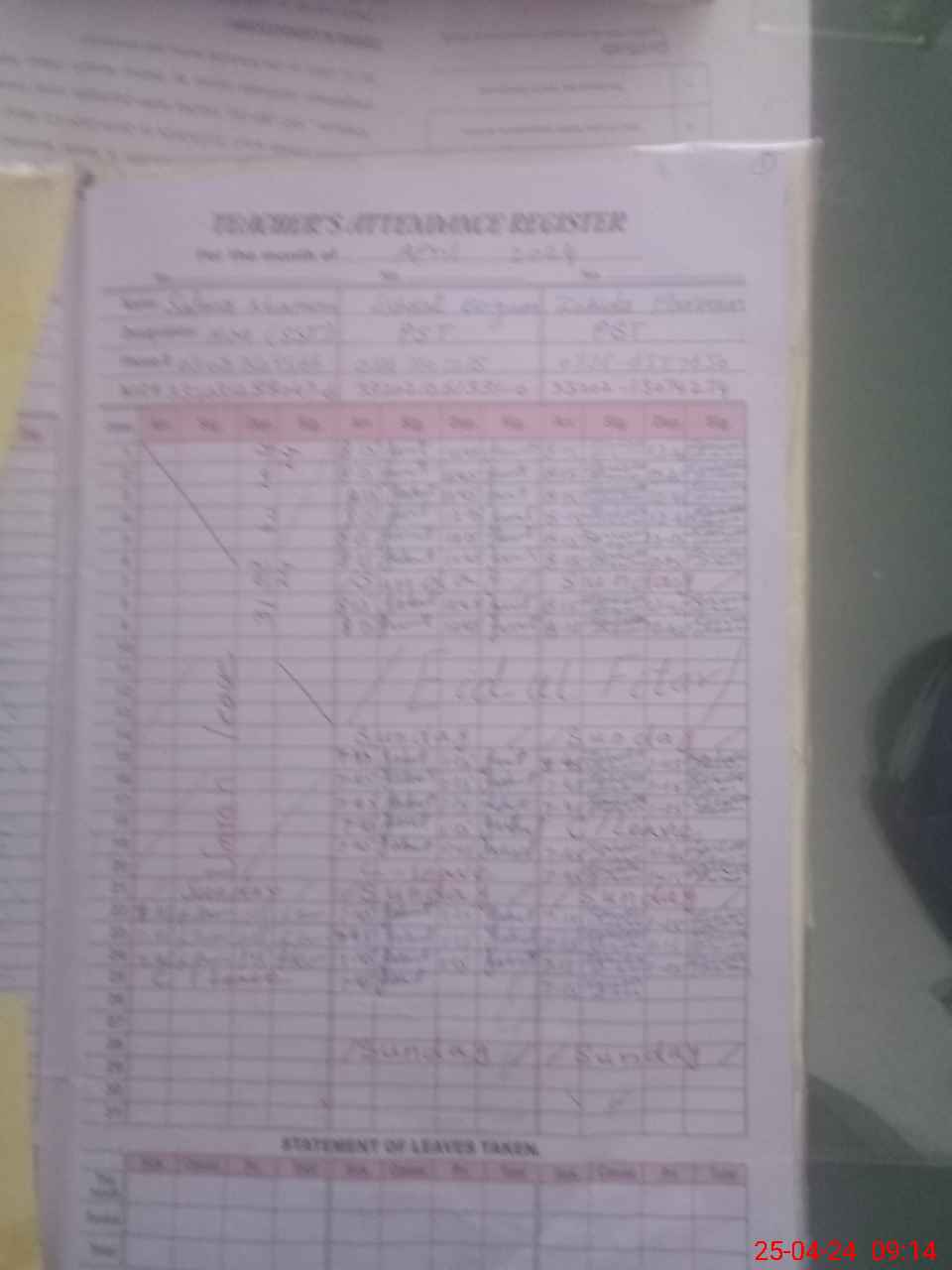 | 33**** | Sa**** Kh**** | 5 | 1 | 0 | 0 | 0 | 0 | 0 | 0 | 0 | 0 | 0 | Absent (Un-Authorized) |