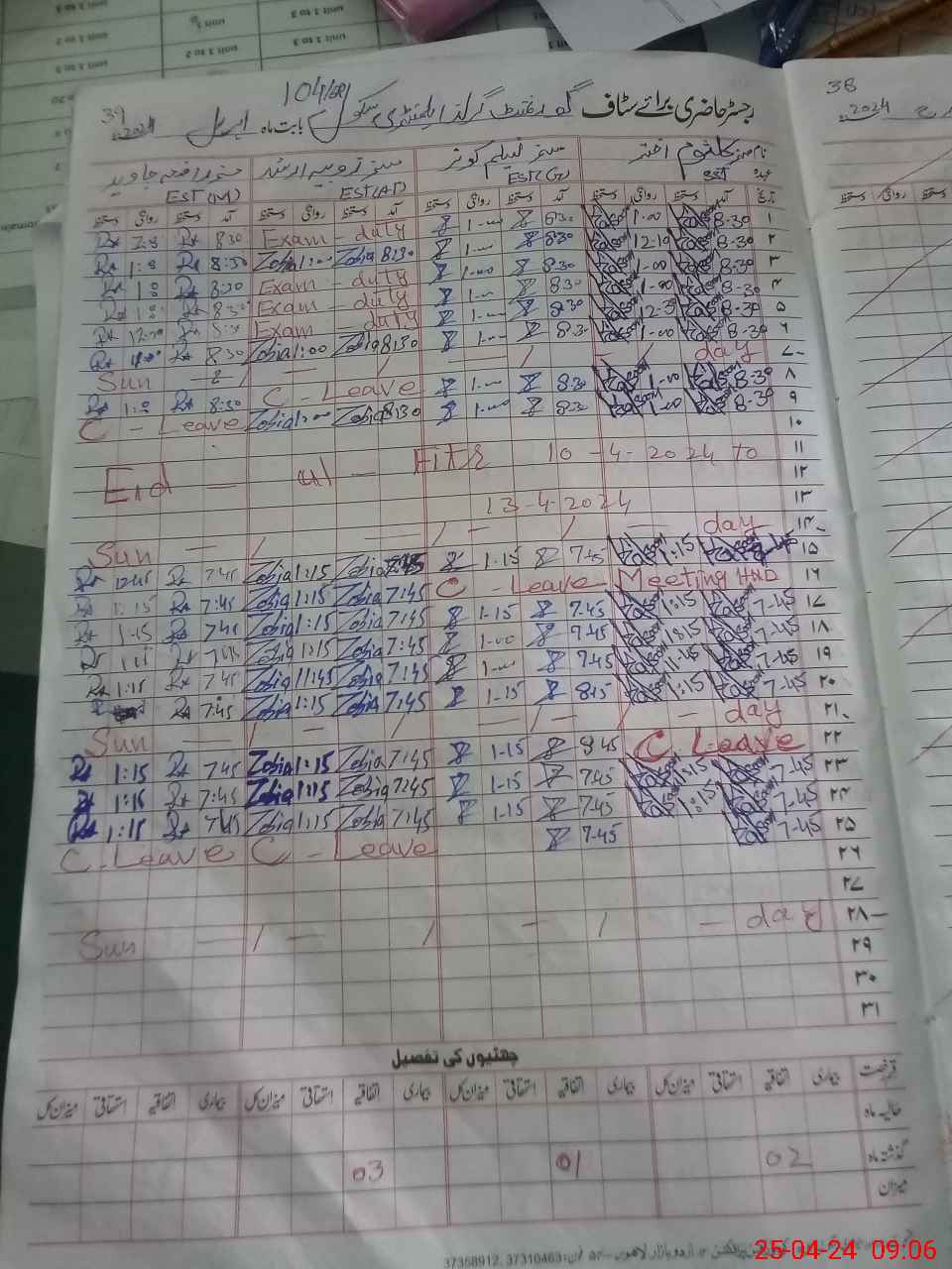 | Leave | Duty | Absent | Maternity | Medical | Ex- Pak |