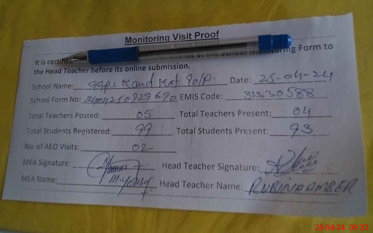 | EMIS Code: 31330588 | Name of School: GGPS KAND KOT 90/P | |||