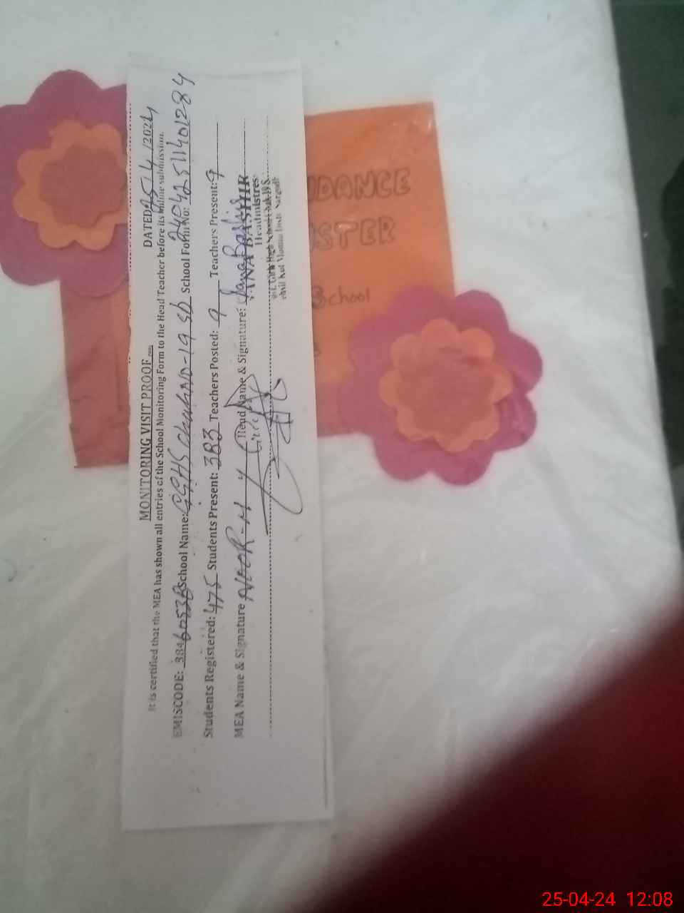 | Attendance Register | Head Teacher | MEA with School | Visit Proof |