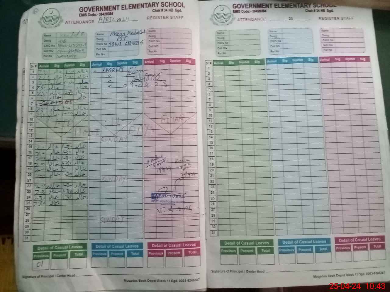 | 38**** | Kh**** Ab**** | 1 | 1 | 0 | 0 | 0 | 0 | 0 | 0 | 0 | 0 | 0 | Absent (Un-Authorized) |