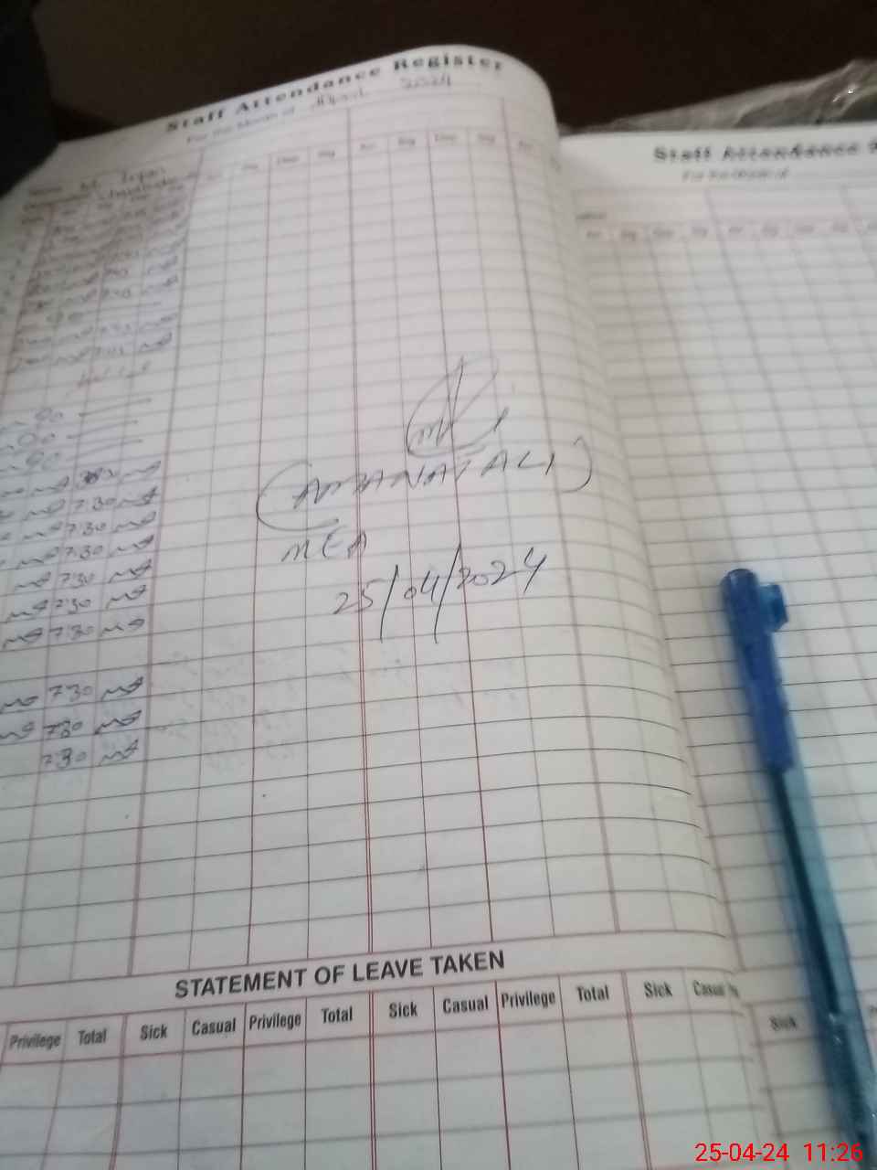 | Leave | Duty | Absent | Maternity | Medical | Ex- Pak |
