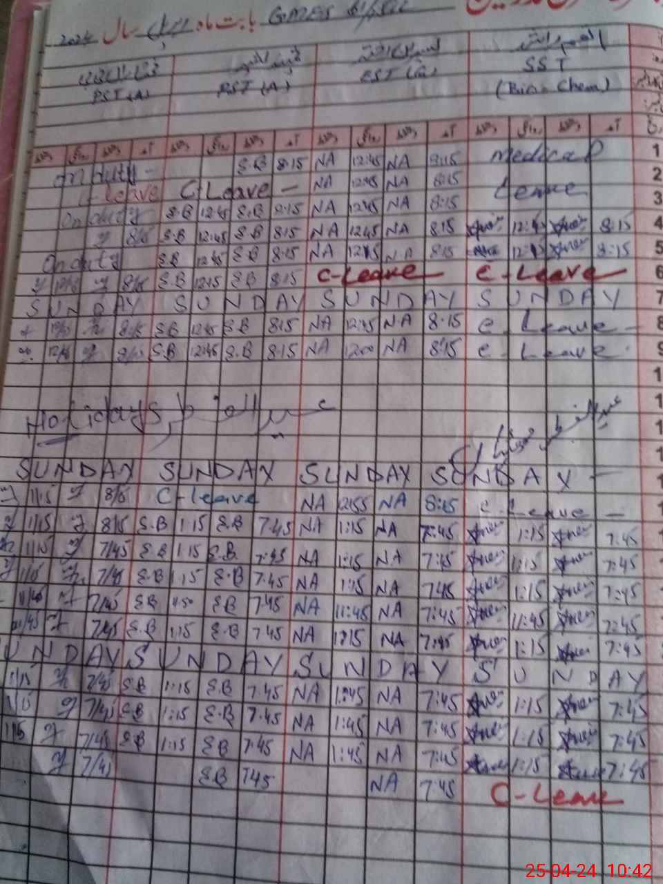 | Leave | Duty | Absent | Maternity | Medical | Ex- Pak |