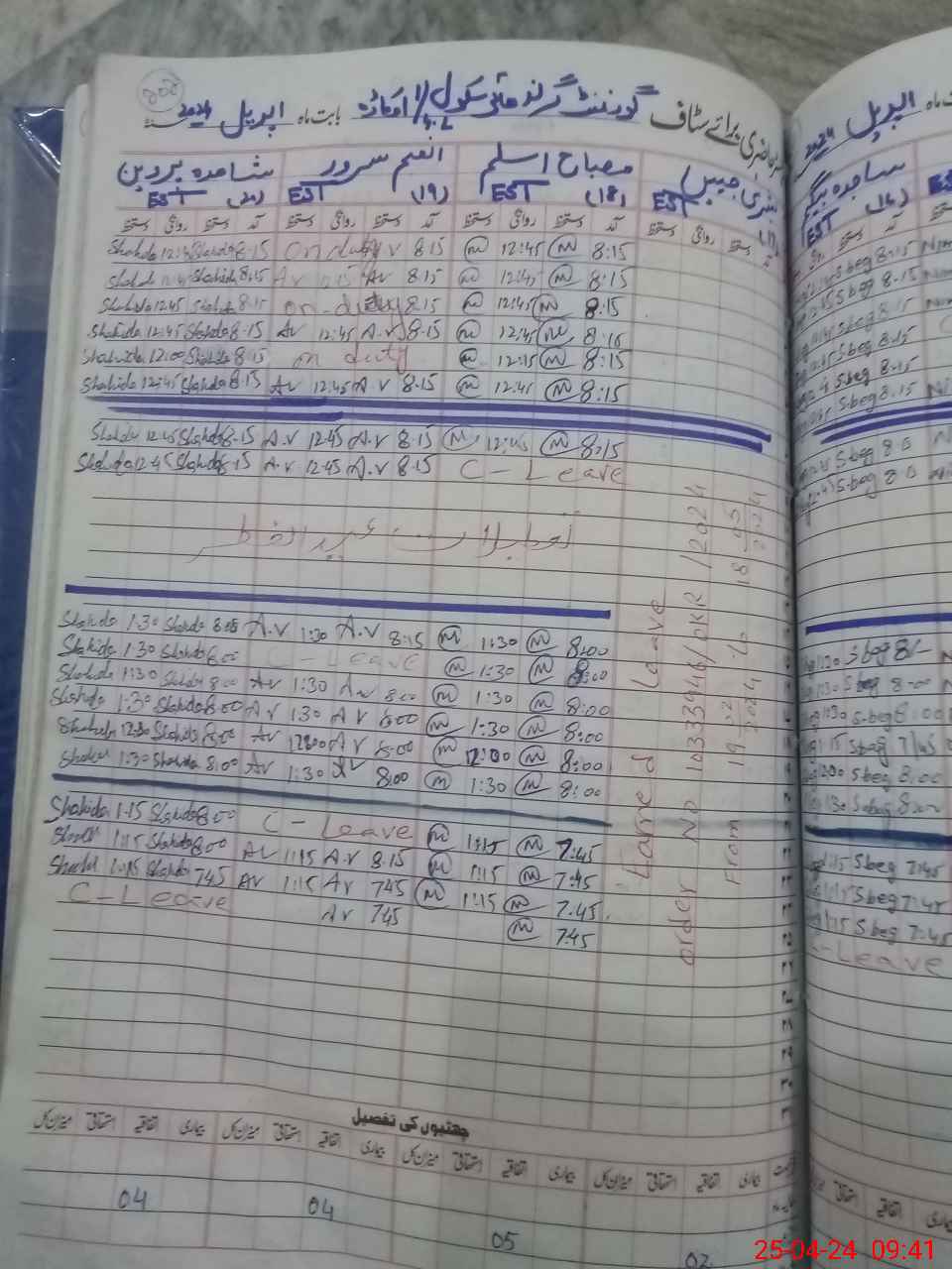 | Leave | Duty | Absent | Maternity | Medical | Ex- Pak |