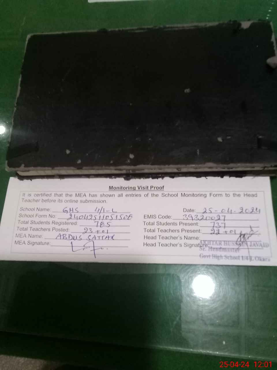 | EMIS Code: 39320027 | Name of School: GHS CHAK NO. 1/4-L | |||
