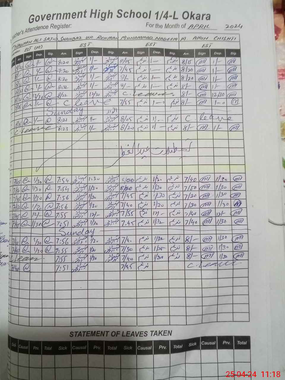 | 35**** | Mu**** Fa**** | 3 | 1 | 0 | 0 | 0 | 0 | 0 | 0 | 0 | 0 | 0 | Exam Duty |
