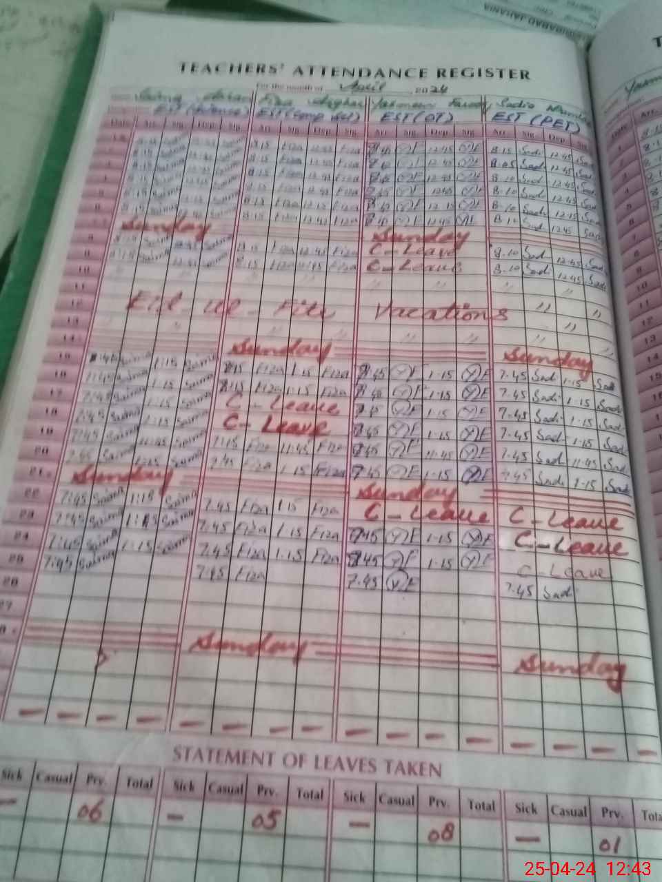 | Leave | Duty | Absent | Maternity | Medical | Ex- Pak |
