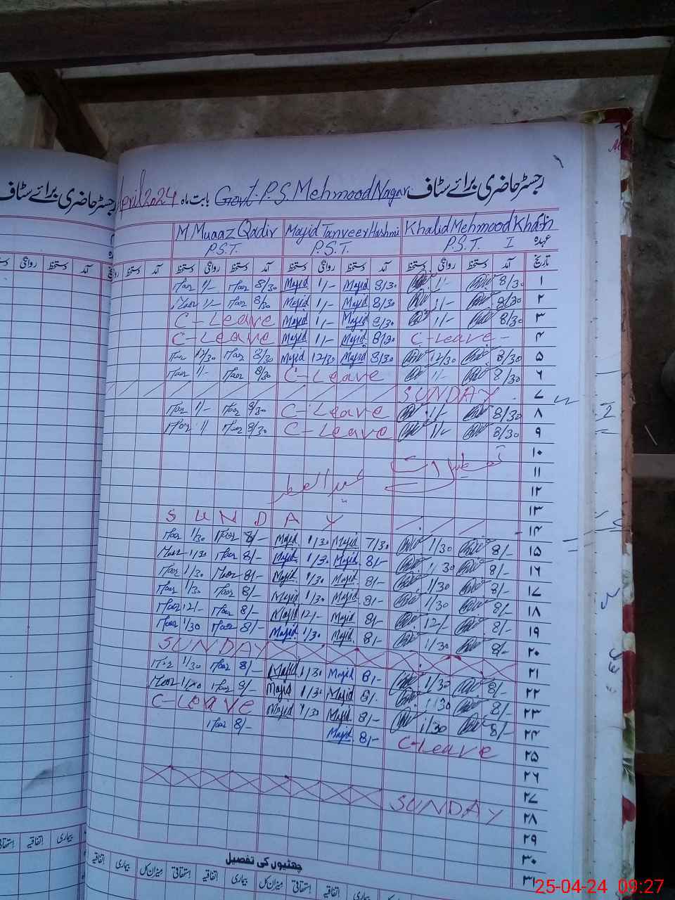 | CNIC | Full Name | Designation | R/C | Absence During Last Calender Month |