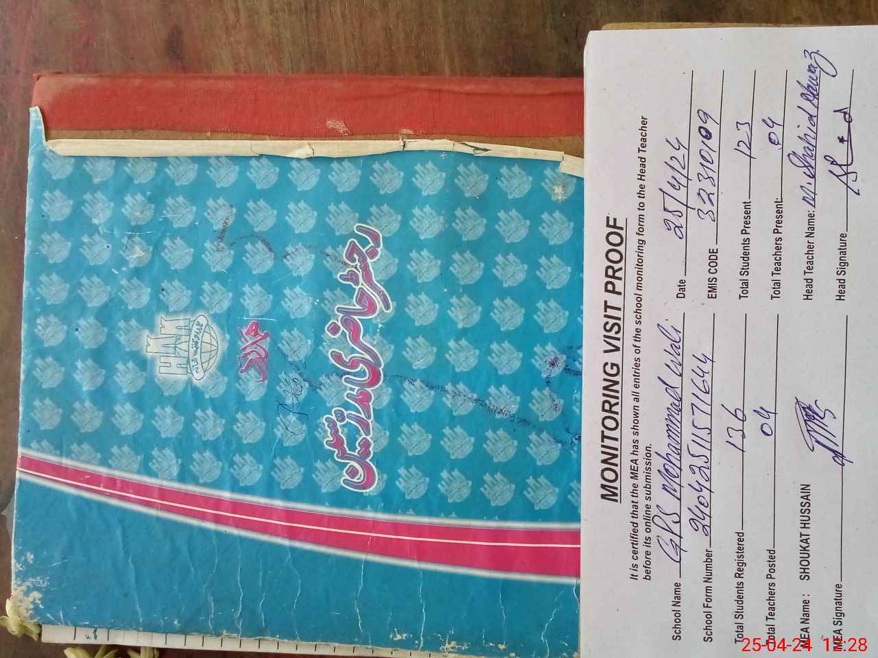 | Attendance Register | Head Teacher | MEA with School | Visit Proof |