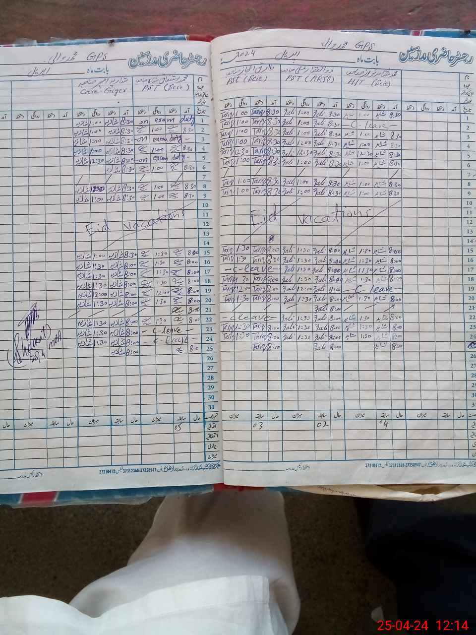 | CNIC | Full Name | Designation | R/C | Absence During Last Calender Month |