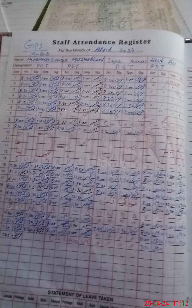 | 35**** | Iq**** Yo**** | PST | Regular | 0 | 0 | 0 | 0 | 0 | 0 | 0 | 0 | 0 | Exam Duty |