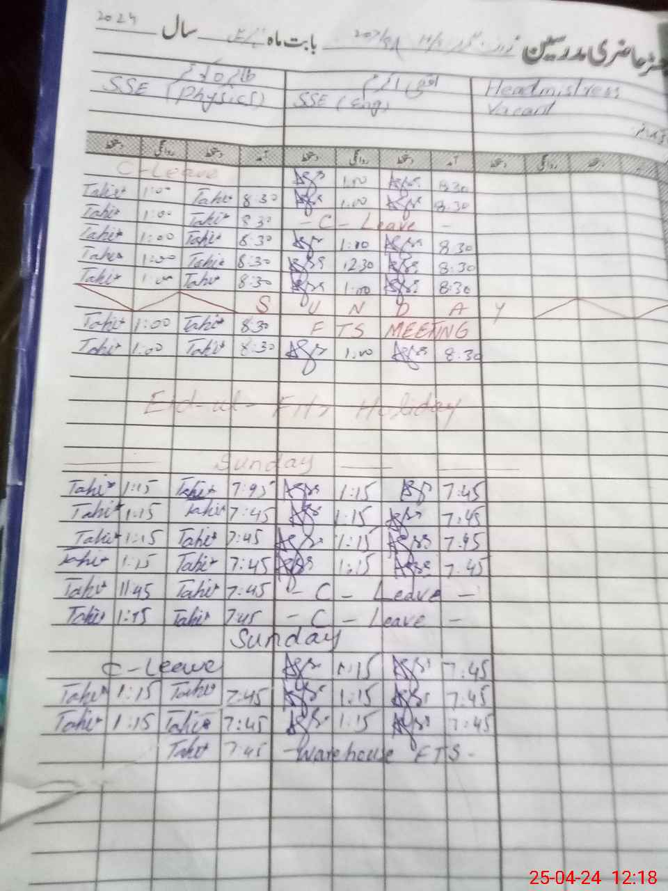 | Leave | Duty | Absent | Maternity | Medical | Ex- Pak |