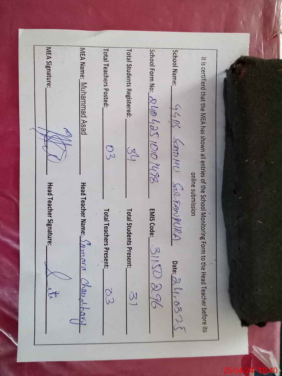 | EMIS Code: 31150296 | Name of School: GGPS SADHU SULTAN PURA | |||