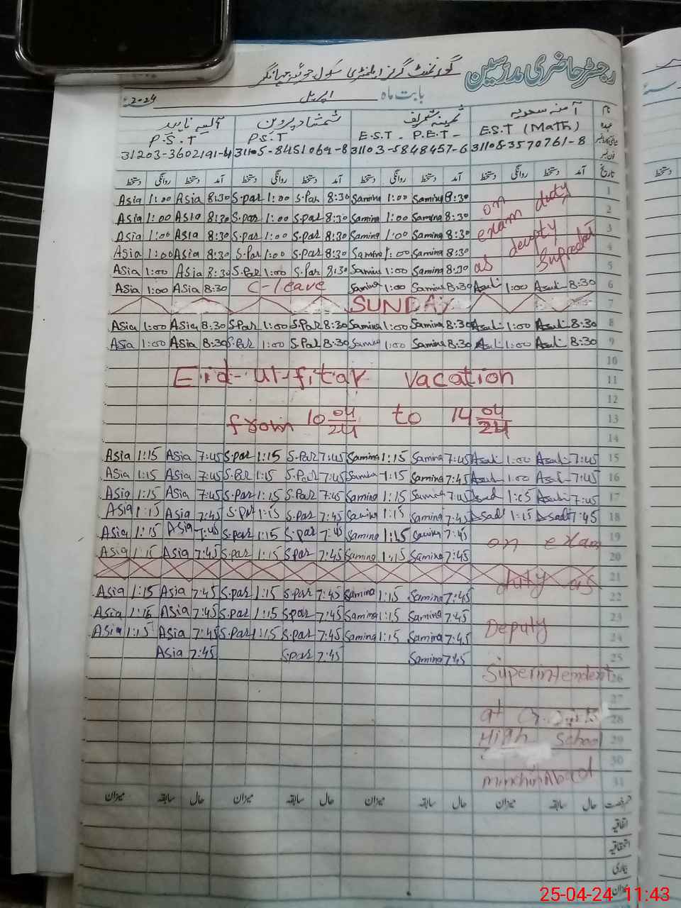 | 31**** | Am**** Sa**** | SESE | Contract | 0 | 0 | 0 | 0 | 0 | 0 | 0 | 0 | 0 | Exam Duty |