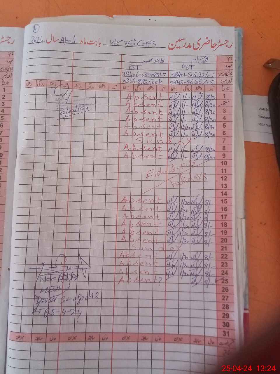 | Name: Mu**** Sa**** Designation: (School Headmaster's/Headmistress's) PST Phone/Cell Number: 03**** |