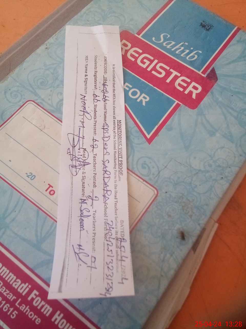 | EMIS Code: 38460266 | Name of School: GPS DERA SARDARA | |||