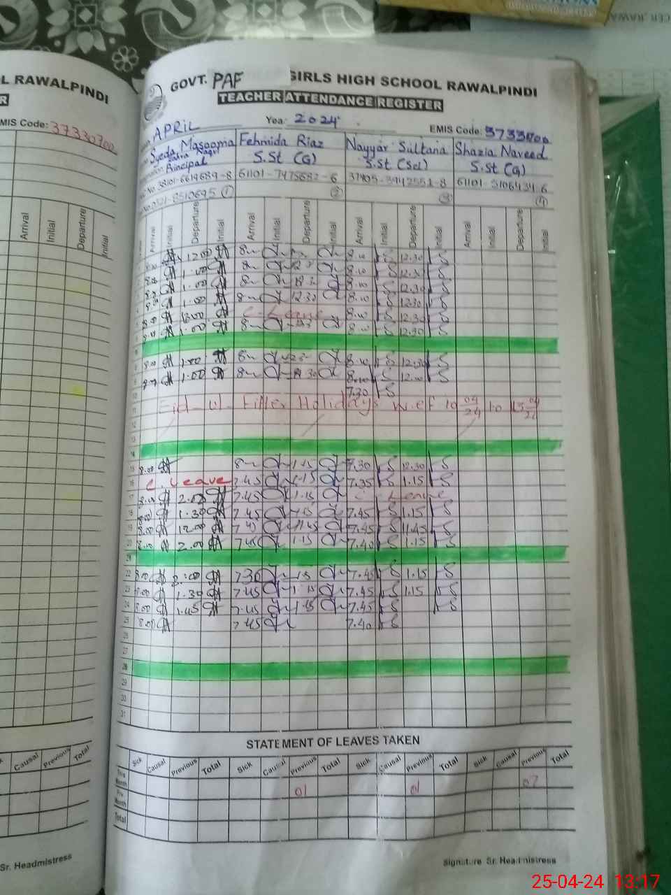 | 38**** | Sy**** Ma**** Za**** Na**** | 11 | 1 | 0 | 0 | 0 | 0 | 0 | 0 | 0 | 0 | 0 | Absent (Un-Authorized) |