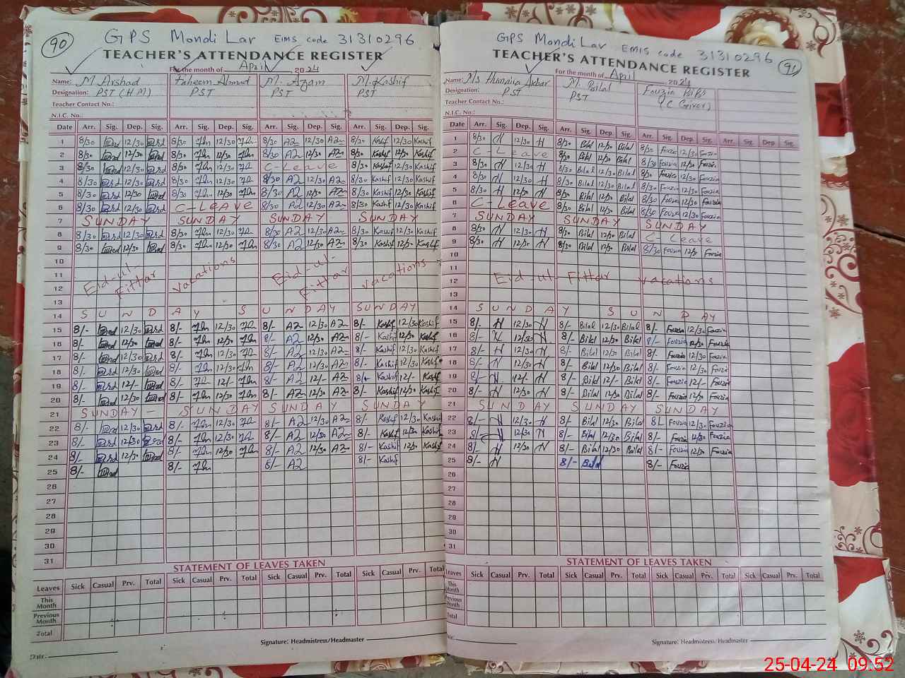 | Name: MO**** AR**** Designation: (School Headmaster's/Headmistress's) PST Phone/Cell Number: 03**** |