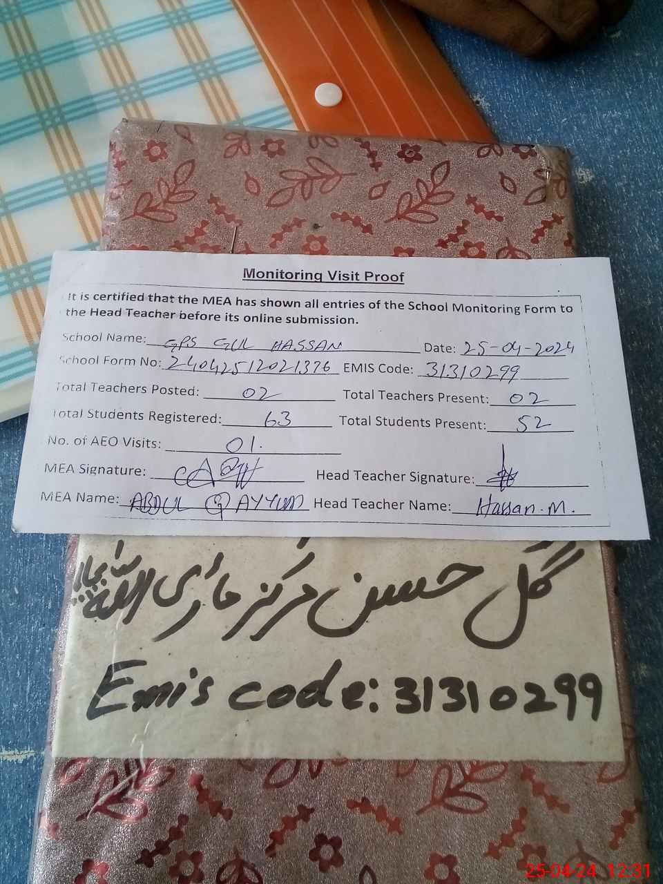 | EMIS Code: 31310299 | Name of School: GPS GULL HASSAN | |||