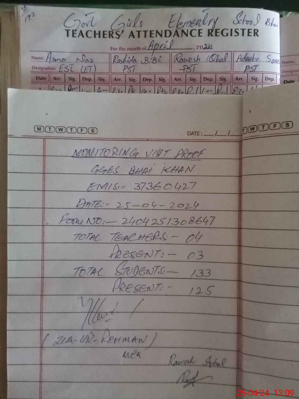 | EMIS Code: 37360427 | Name of School: GGES BHAI KHAN | |||