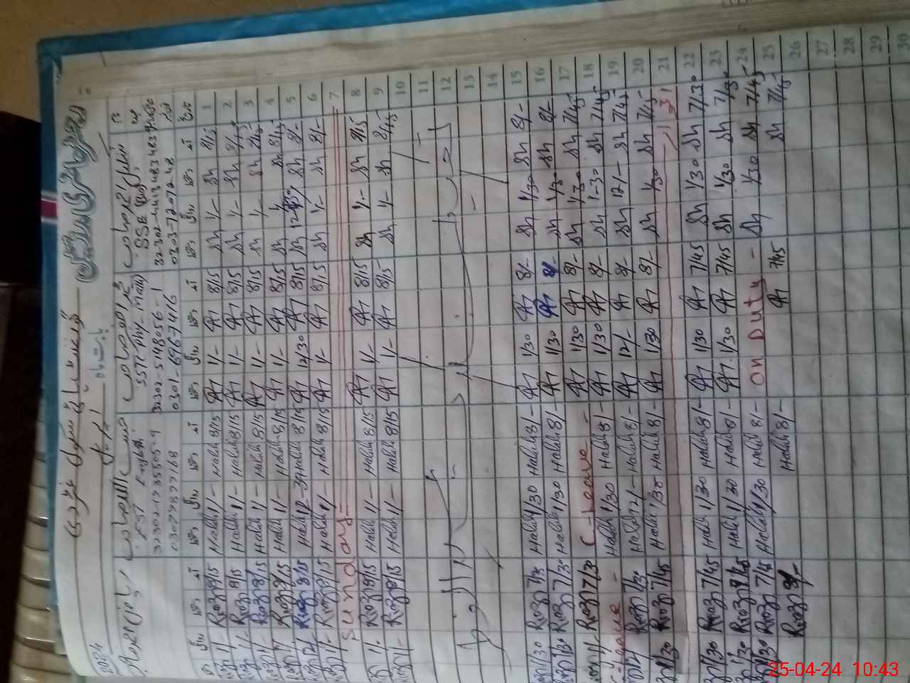 | Leave | Duty | Absent | Maternity | Medical | Ex- Pak |