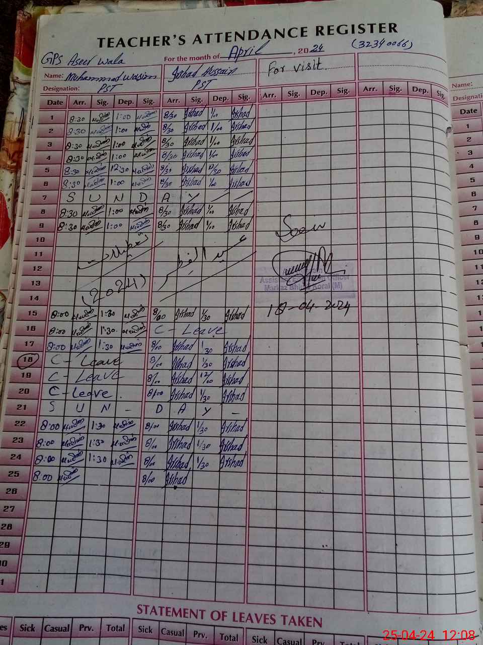 | EMIS Code: 32340066 | Name of School: GPS ASEER WALA | |||