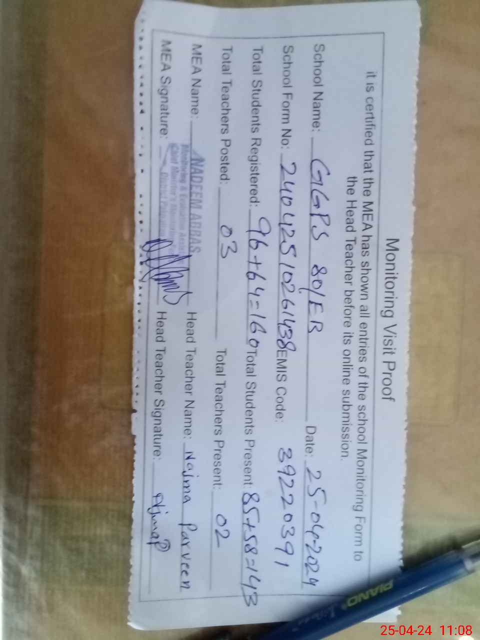 | EMIS Code: 39220391 | Name of School: GGPS 80 EB | |||