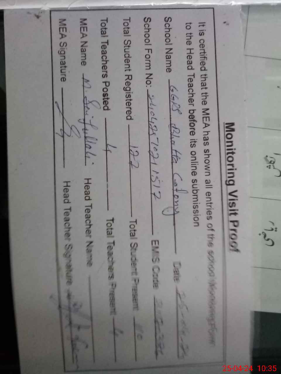 | EMIS Code: 31120386 | Name of School: GGPS BAHTTA COLONY | |||