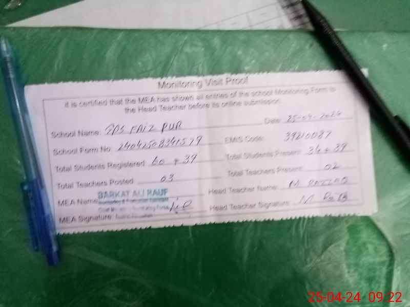 | EMIS Code: 39210087 | Name of School: GPS FAIZ PUR P.O BOYLE GANJ | |||