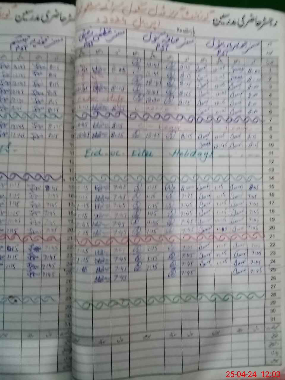 | CNIC | Full Name | Designation | R/C | Absence During Last Calender Month |