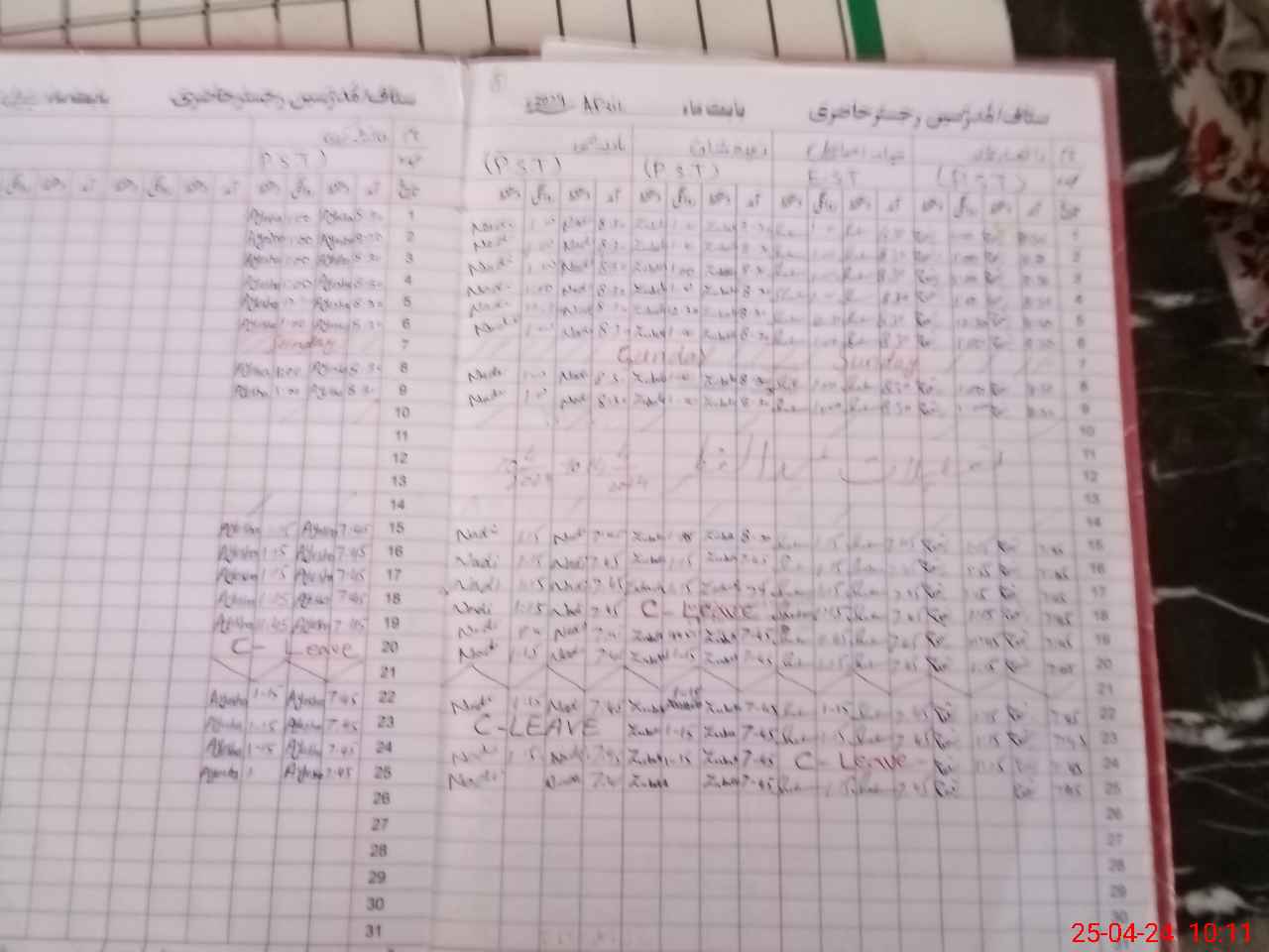 | Leave | Duty | Absent | Maternity | Medical | Ex- Pak |