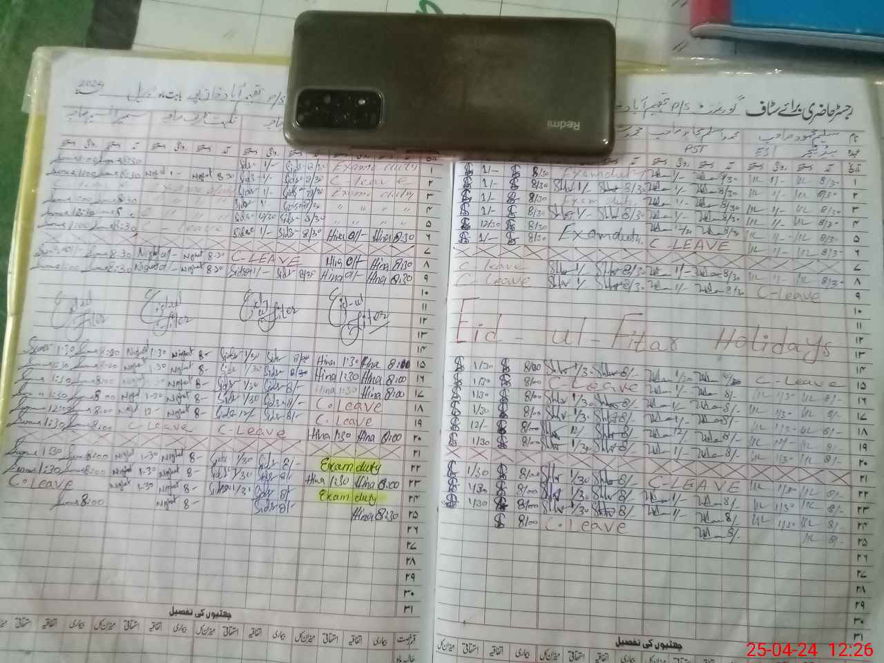 | Leave | Duty | Absent | Maternity | Medical | Ex- Pak |