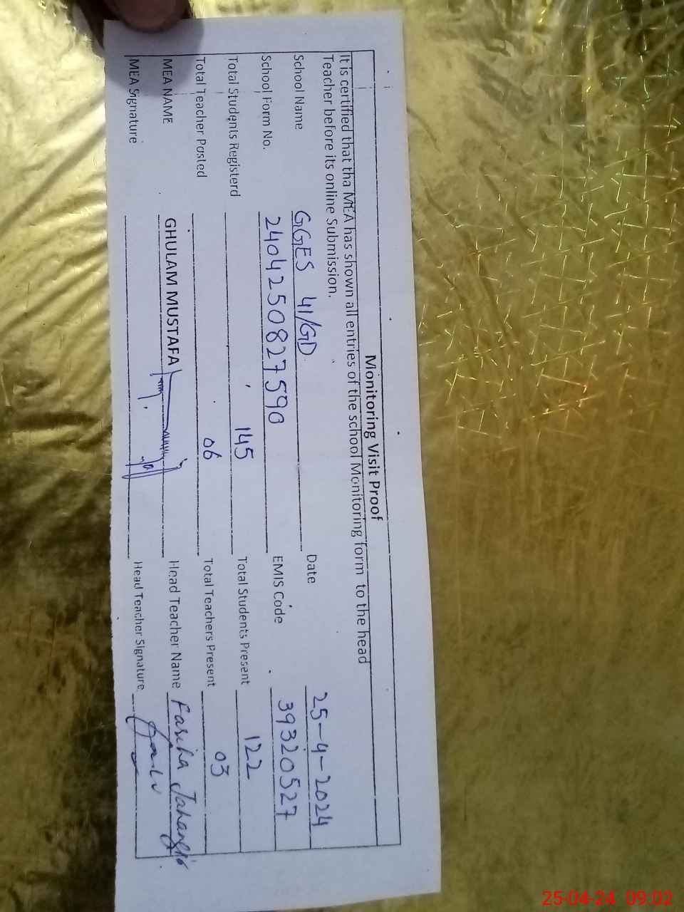 | EMIS Code: 39320527 | Name of School: GGES 41/G.D | |||