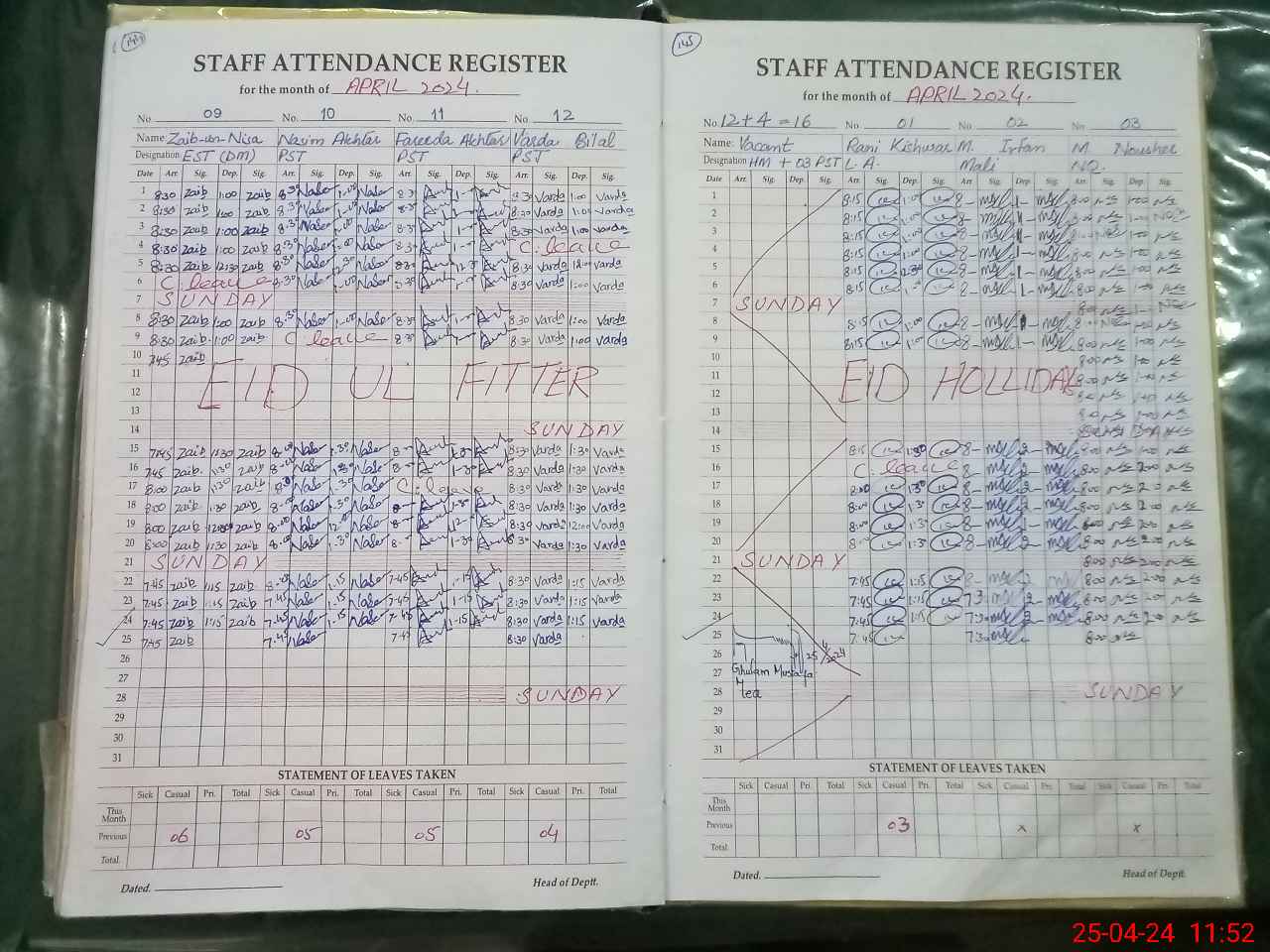 | CNIC | Full Name | Designation | R/C | Absence During Last Calender Month |