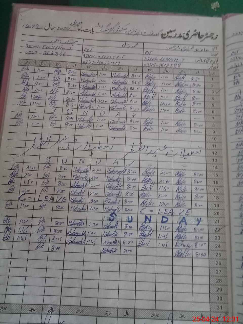 | Name: Ha**** Kh**** UrRe**** Designation: (School Headmaster's/Headmistress's) PST Phone/Cell Number: 03**** |