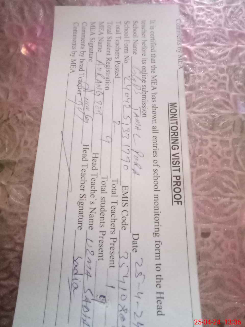 | EMIS Code: 35410809 | Name of School: GGPS JAMAL PURA | |||