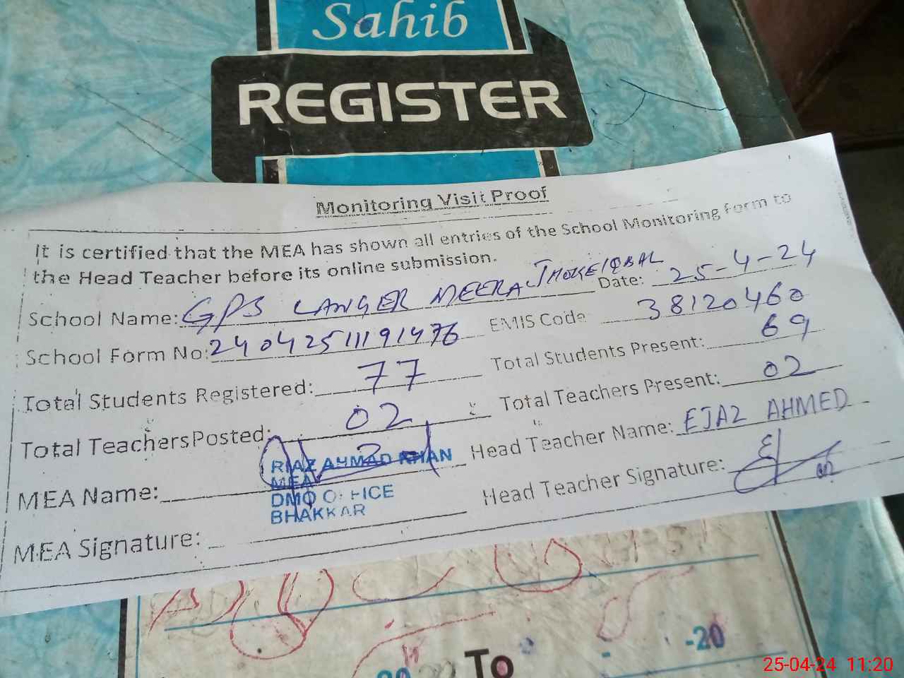 | EMIS Code: 38120460 | Name of School: GPS LANGAR MEERA (JHOKE IQBAL) | |||