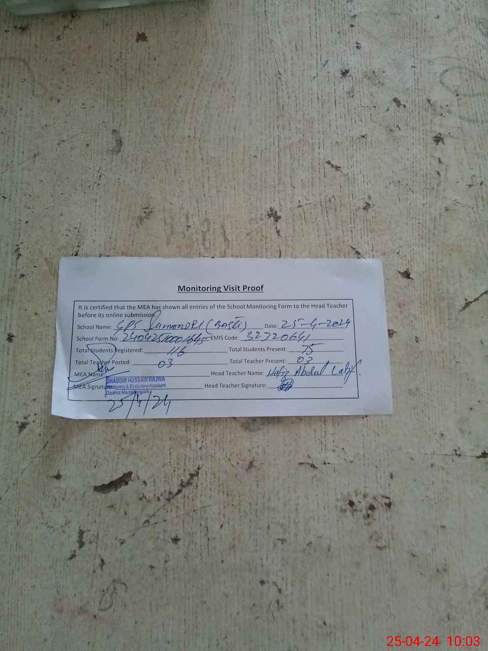 | Certified that this School was Inspected by the Undersigned MEA/DMO Today and the Information Stated Above is as Per Record. | |||||